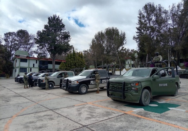 Realizan en Tlaxcala patrullajes conjuntos en carreteras y áreas urbanas; retiran vehículo incendiado