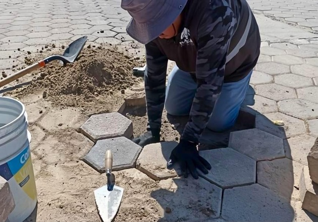 realizaron trabajos de nivelación de adoquín en Privada Los Sabinos y