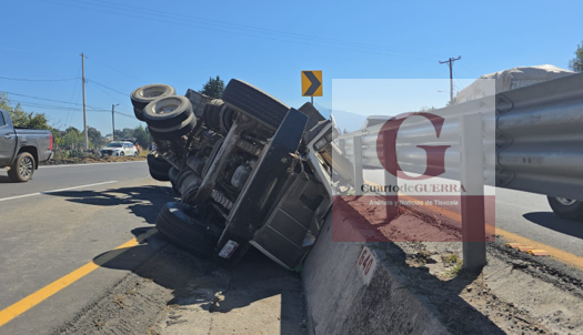 Caos en la Apizaco-Tlaxcala: Vuelca revolvedora de 20 toneladas en los límites de Tizatlán y Totolac