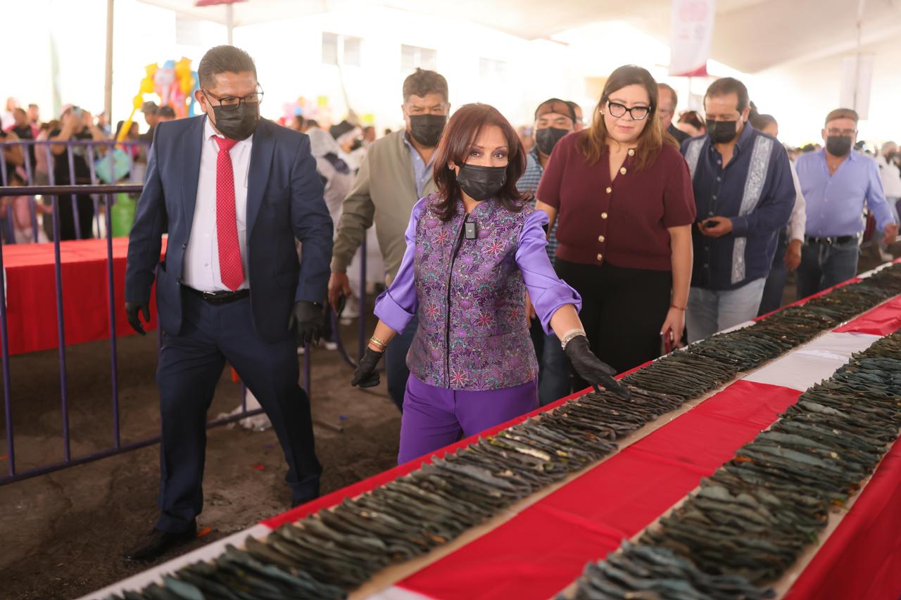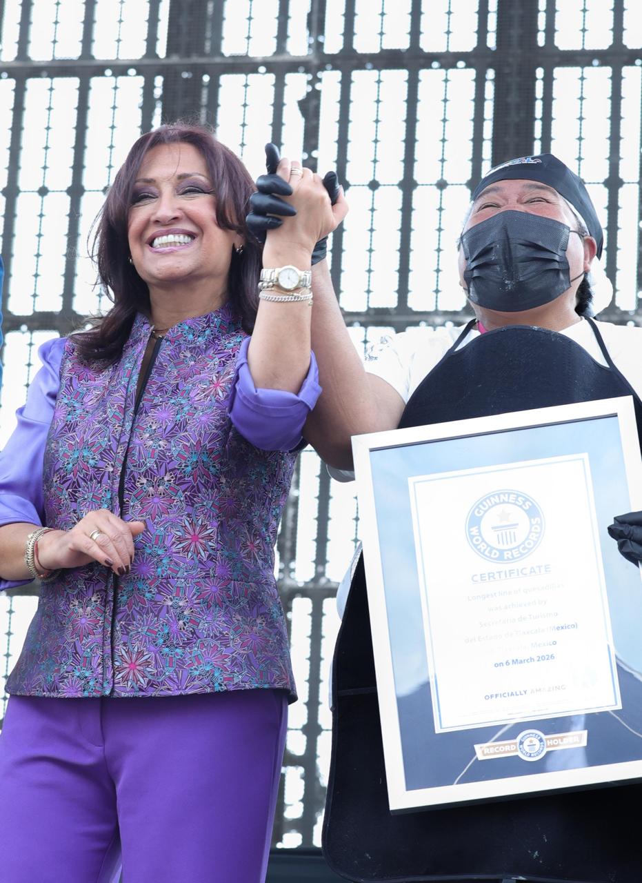 Tlaxcala logró el nuevo título mundial de Récord Guinness por “la línea de quesadillas más grande del mundo”, en el marco de la inauguración de la Feria de la Quesadilla y el Tlacoyo 2026, en Santa Ana Nopalucan, reconocimiento que recibieron la gobernadora Lorena Cuéllar Cisneros y el presidente municipal Pedro Pérez Vázquez de manos de la adjudicadora oficial de Guinness World Records para América, Susana Reyes.