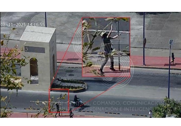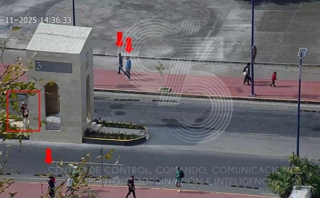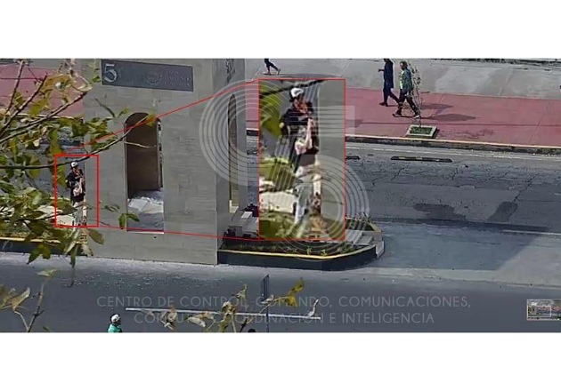 Mediante el monitoreo, las cámaras de videovigilancia captaron al menos a cinco jovenes con vestimenta oscura realizar pintas y colocar cartulinas con mensajes. Después, se refugiaron durante unos minutos en la Plaza Inn, frente al antiguo Asta Bandera, para después huir hacia distintos destinos.