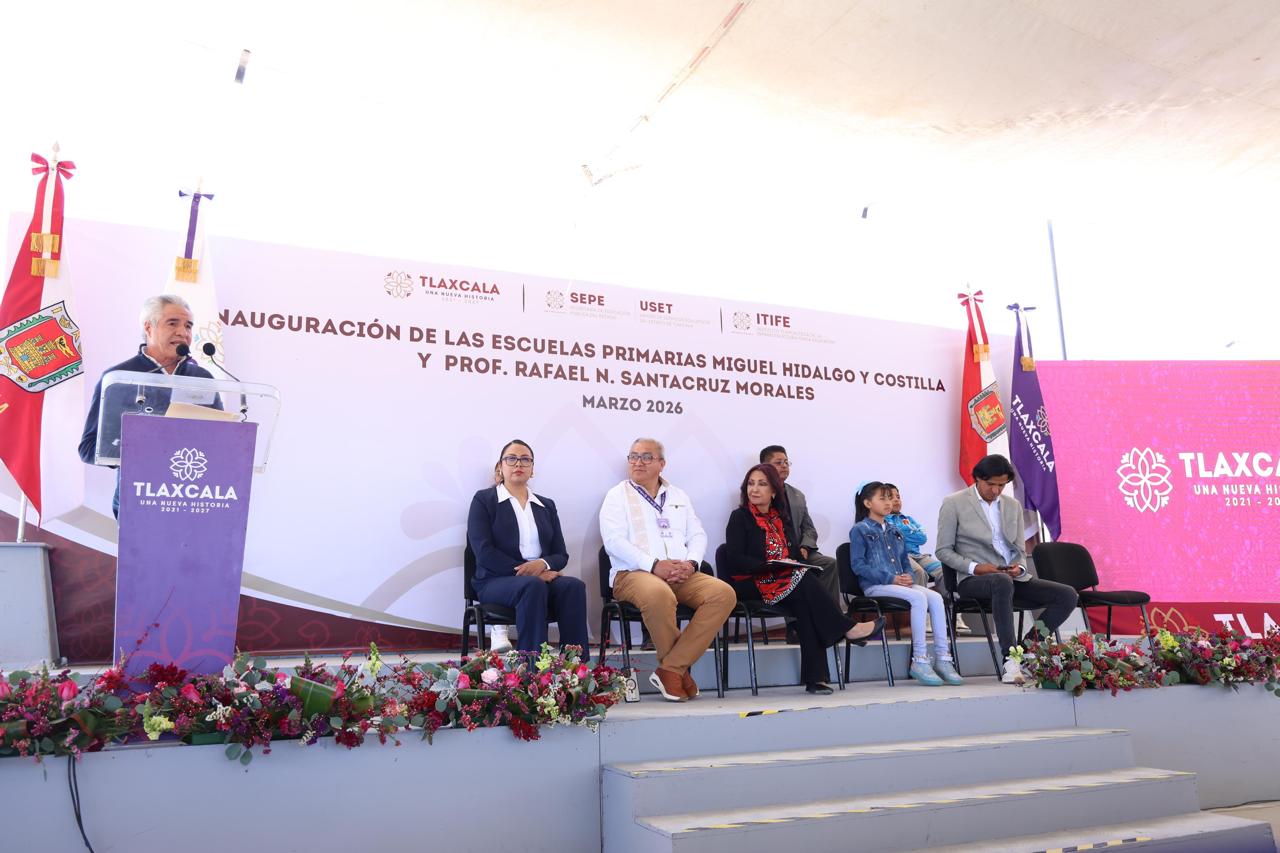 La gobernadora Lorena Cuéllar Cisneros afirmó que garantizar entornos escolares dignos es una prioridad de su administración, al encabezar la inauguración de un nuevo plantel educativo en el municipio de Tocatlán, inmueble que albergará a las primarias “Miguel Hidalgo y Costilla”, en turno matutino, y “Prof. Rafael N. Santacruz Morales”, en turno vespertino.