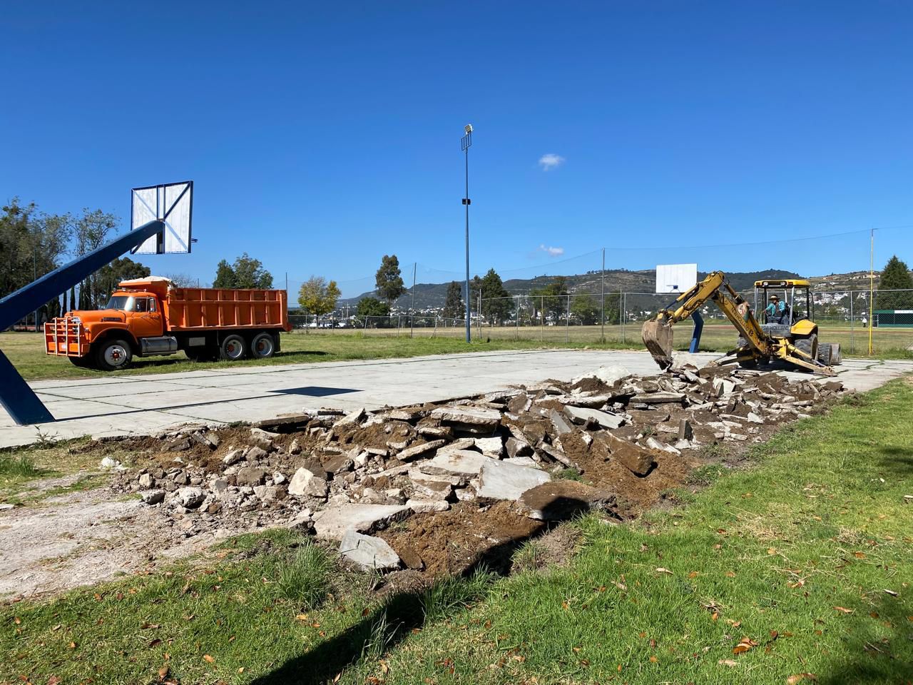 La obra contempló la demolición total de la plancha anterior, nivelación del terreno, colocación de nuevo tepetate, construcción de guarniciones y el colado de una nueva plancha de concreto, garantizando mayor durabilidad y seguridad para quienes la utilicen.