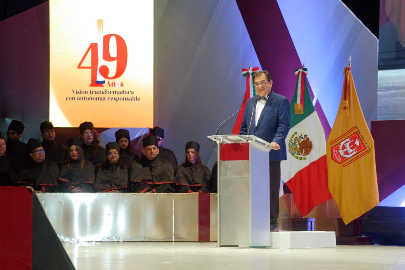 * La Universidad celebra 49 años de fundación condecorando al Maestro Alberto Moreno con la presea “Faro de la Sabiduría Científica y Tecnológica”