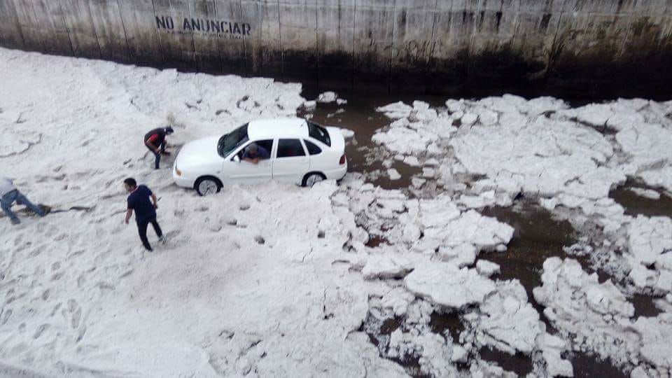 Granizo cubre de blanco calles en Apizaco