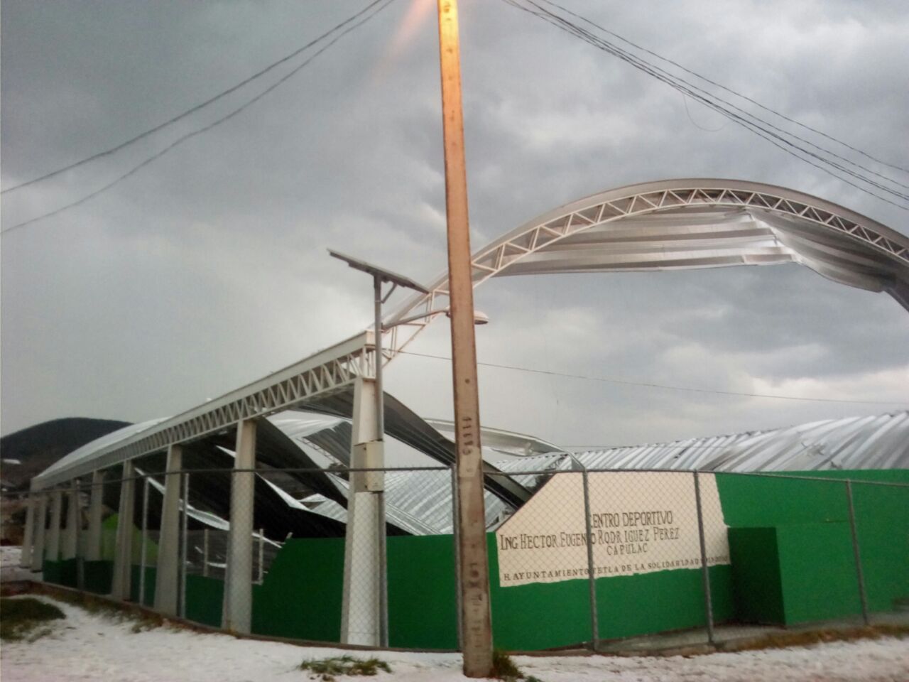 Entre los daños más graves de la intensa granizada están el colapso de la techumbre de unas canchas en la comunidad de Capulac, mismos que dañaron un par de automóviles.