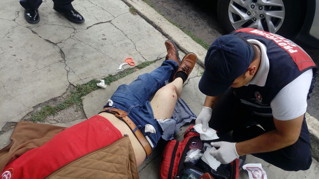 Autoridades dieron atención inmediata a lesionado por intento de asalto.