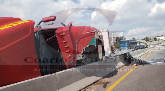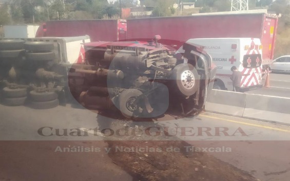 Vuelca tráiler en la Apizaco-Tlaxcala, a la altura de Atlihuetzía