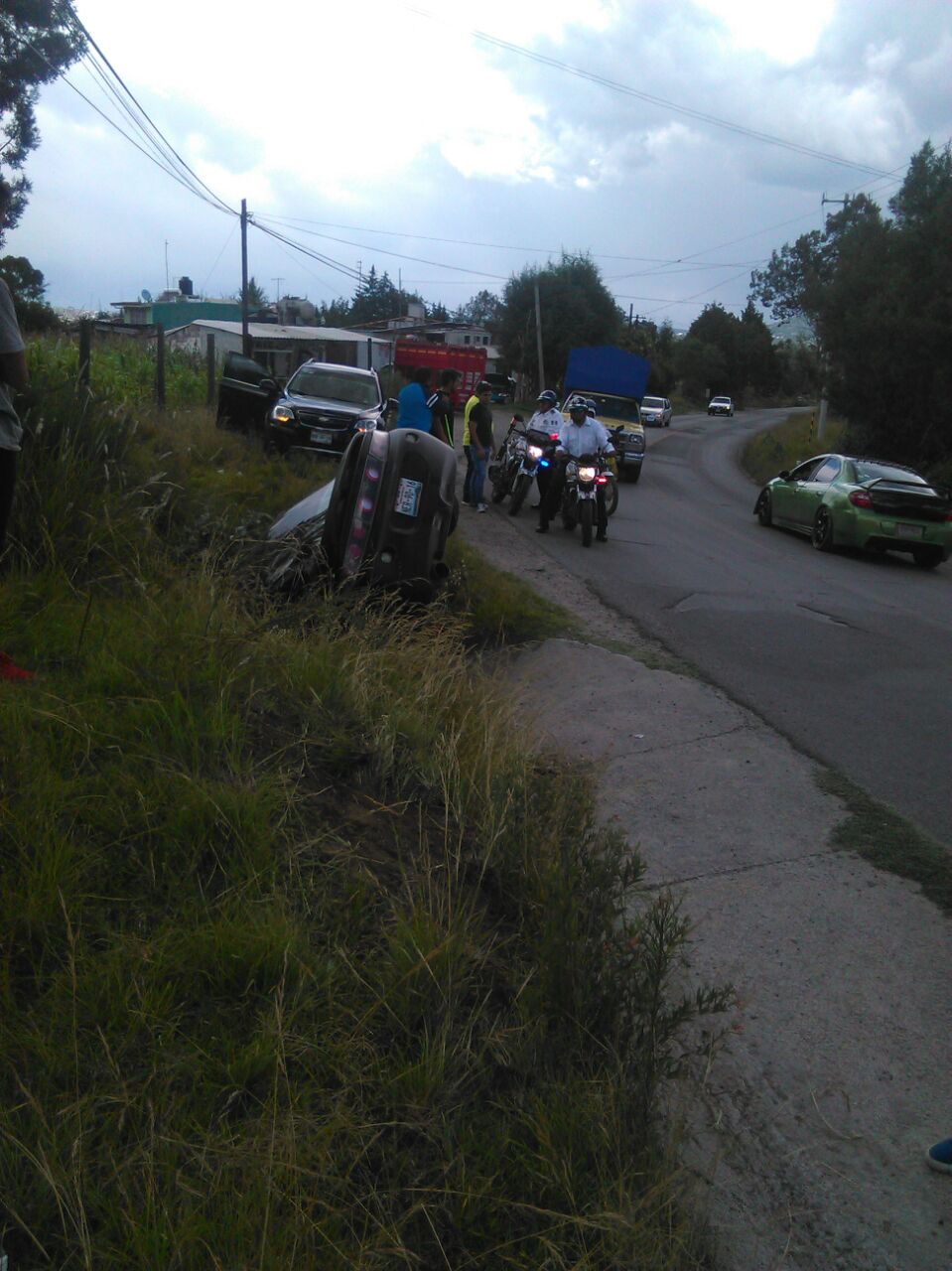 Se reportó una volcadura en la carretera Apizco-San Andrés, al parecer dejando una persona lesionada con luxación a nivel de homoplato, quien se niega a dar atencion por su estado etilico