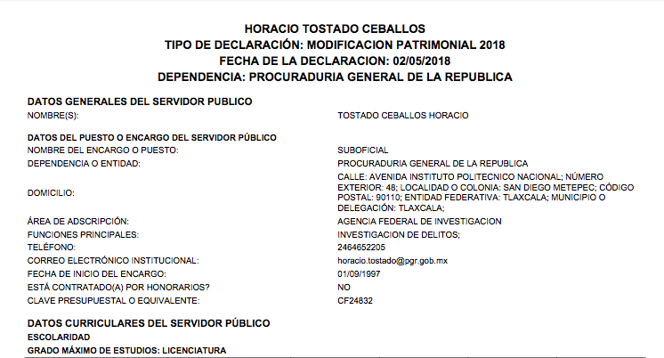 Una denuncia hecha llegar a este medio, señala a Horacio Tostado Ceballos, oficial de la agencia federal de investigación de delitos de la PGR en la delegación Tlaxcala por los delitos de Cohecho y extorsión en contra de víctimas de delitos, imputados y familiares en la entidad.