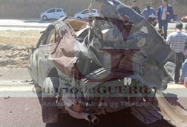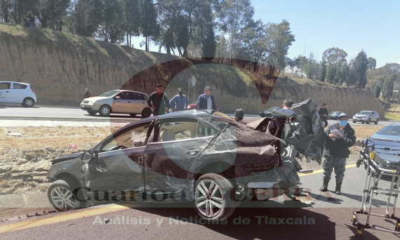 Un auto Jetta que circulaba sobre el Libramiento Apizaco, cerca de Ciudad Judicial y con sentido al poniente, fue impactado por una pesada unidad, lo que causó que volcara.