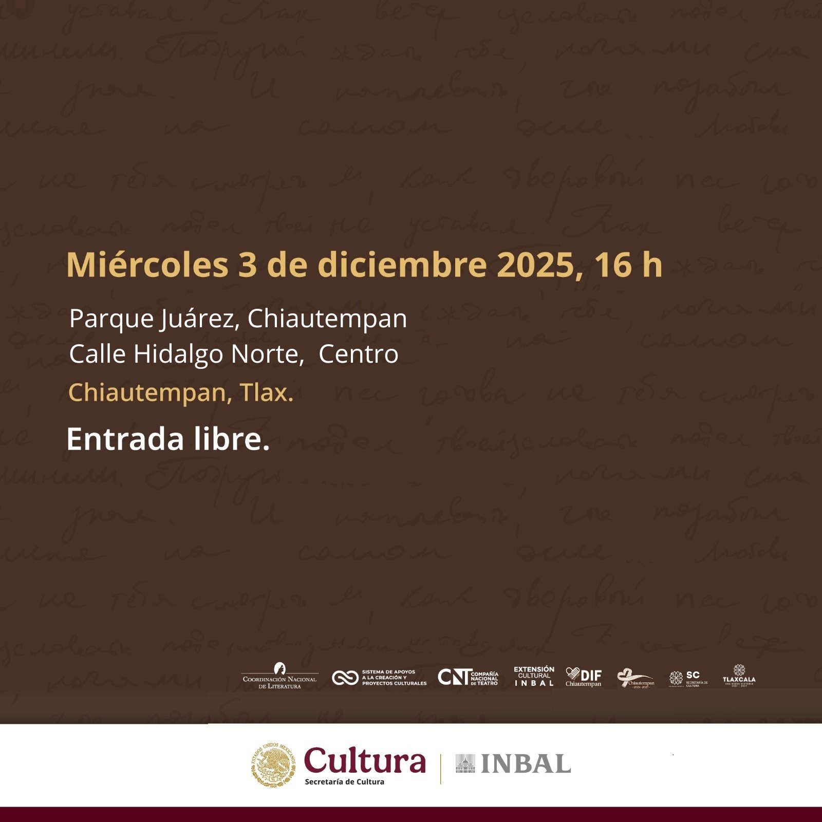 El gobierno de Chiautempan, presidido por Blanca Angulo, a través del DIF Municipal y la Dirección de Cultura y Turismo, realizará este foro con textos de Miguel N. Lira, en el marco del 120 aniversario de su natalicio, donde también participará el actor Ariel López Padilla.