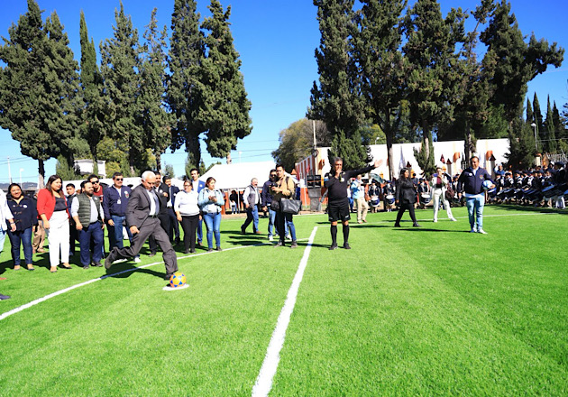 El Ayuntamiento y la Secretaría del Bienestar inauguran cancha de Fut-7 en el Centro Escolar Chiautempan