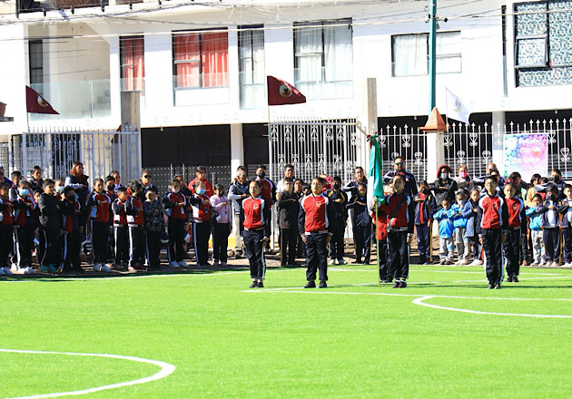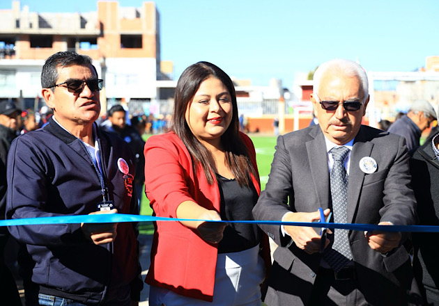 De esta manera, las diferentes autoridades visitaron el nuevo espacio deportivo y realizaron la patada inaugural de la cancha en presencia de los estudiantes.