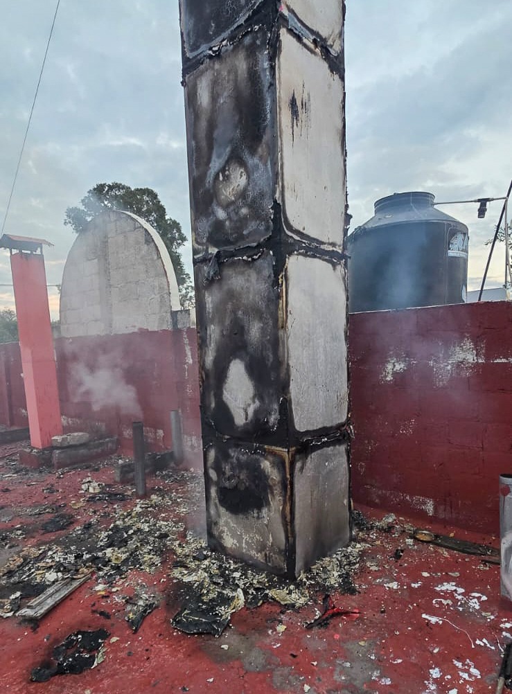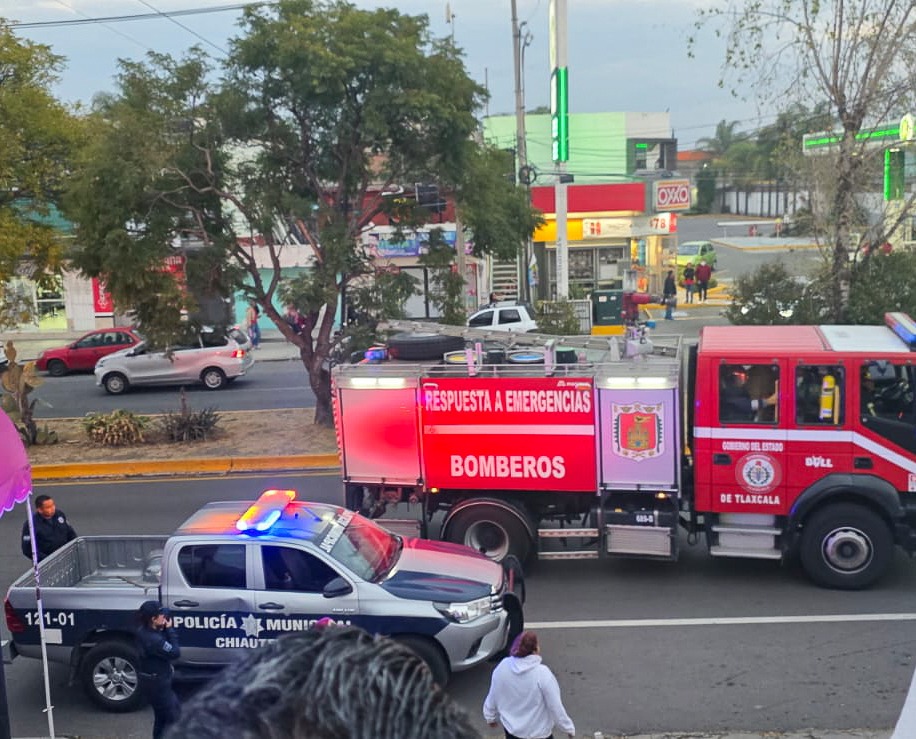 Elementos de Protección Civil, Seguridad Pública de Chiautempan y Bomberos atendieron oportunamente un incendio en un establecimiento de comida sobre la carretera Santa Ana–Tlaxcala, frente a una gasolinera.