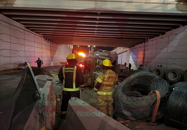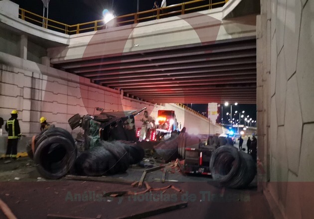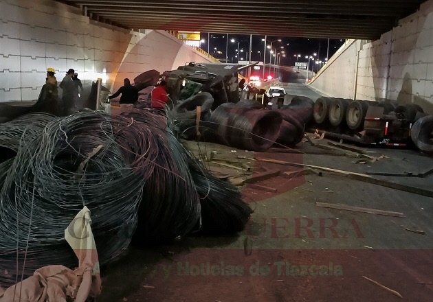 Vuelca tráiler cargado de alambrón en la Santa Ana-Apizaco