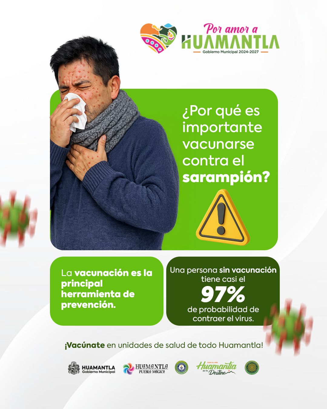 Con el objetivo de proteger la salud de la población y prevenir contagios, se informa a las y los habitantes de Huamantla sobre qué es el sarampión, sus síntomas y las principales medidas de prevención, a fin de que la ciudadanía tome precauciones oportunas.