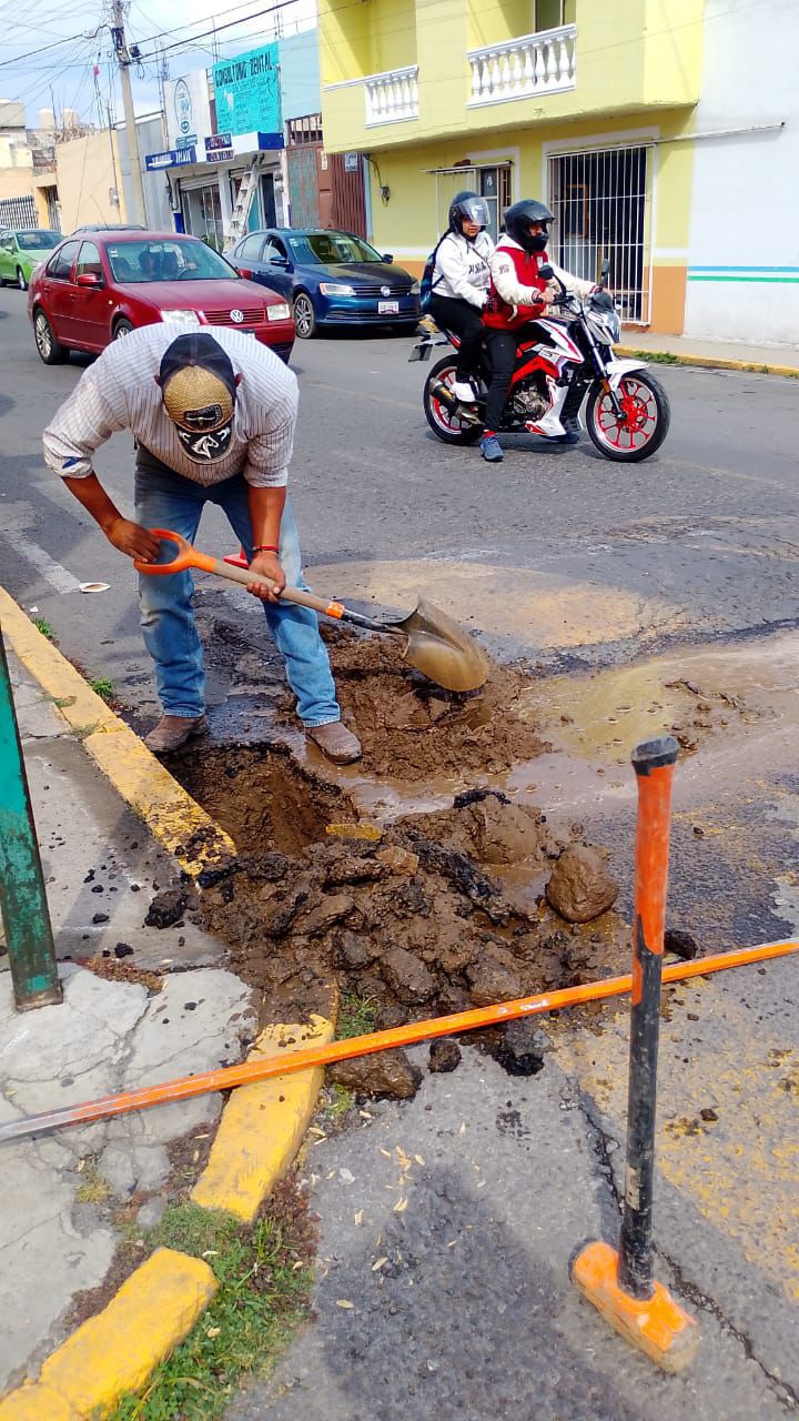De manera complementaria, una vez concluidos los trabajos en la red de agua, se llevan a cabo labores de reparación de baches en calle Allende y calle Juan de Zumárraga, contribuyendo a mejorar la movilidad y las condiciones de las vialidades.