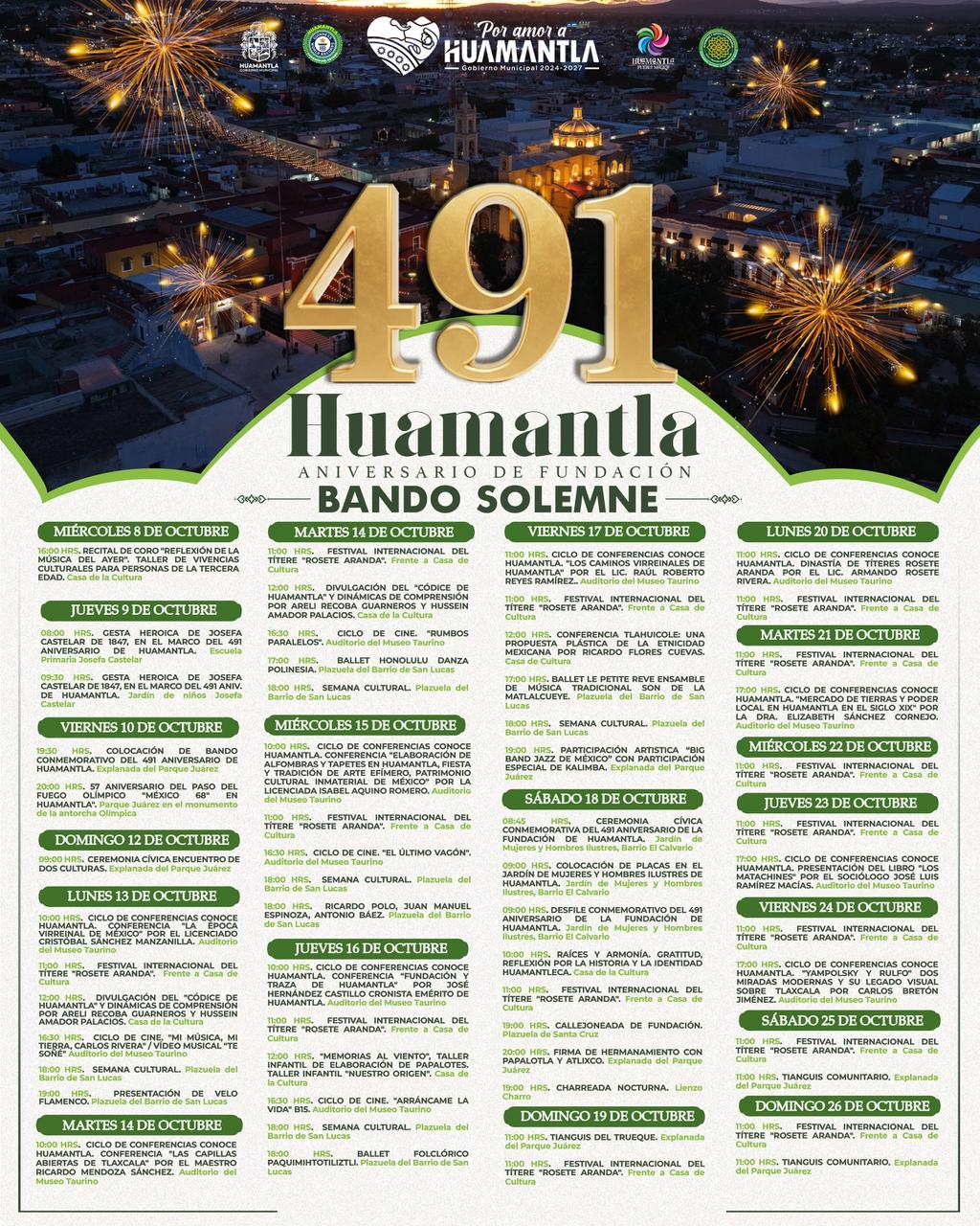 El H. Ayuntamiento de Huamantla, que encabeza el presidente municipal Salvador Santos Cedillo, invita a toda la ciudadanía a formar parte de las actividades conmemorativas por el 491 aniversario de la fundación de Huamantla, una celebración que honra nuestras raíces, tradiciones y el orgullo de ser huamantlecos.
