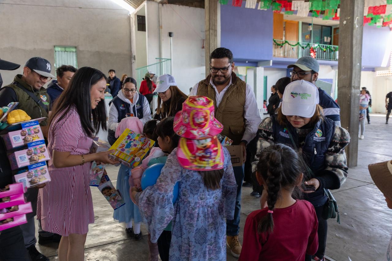 En el cierre de la caravana, se visitaron el Barrio de La Preciosa y San Antonio, así como las comunidades de Galeana, El Carmen Xalpatlahuaya, Lázaro Cárdenas, San Diego Xalpatlahuaya y Acasillados San Martín Notario, donde niñas y niños recibieron juguetes en un ambiente de convivencia, sonrisas y tradición.
