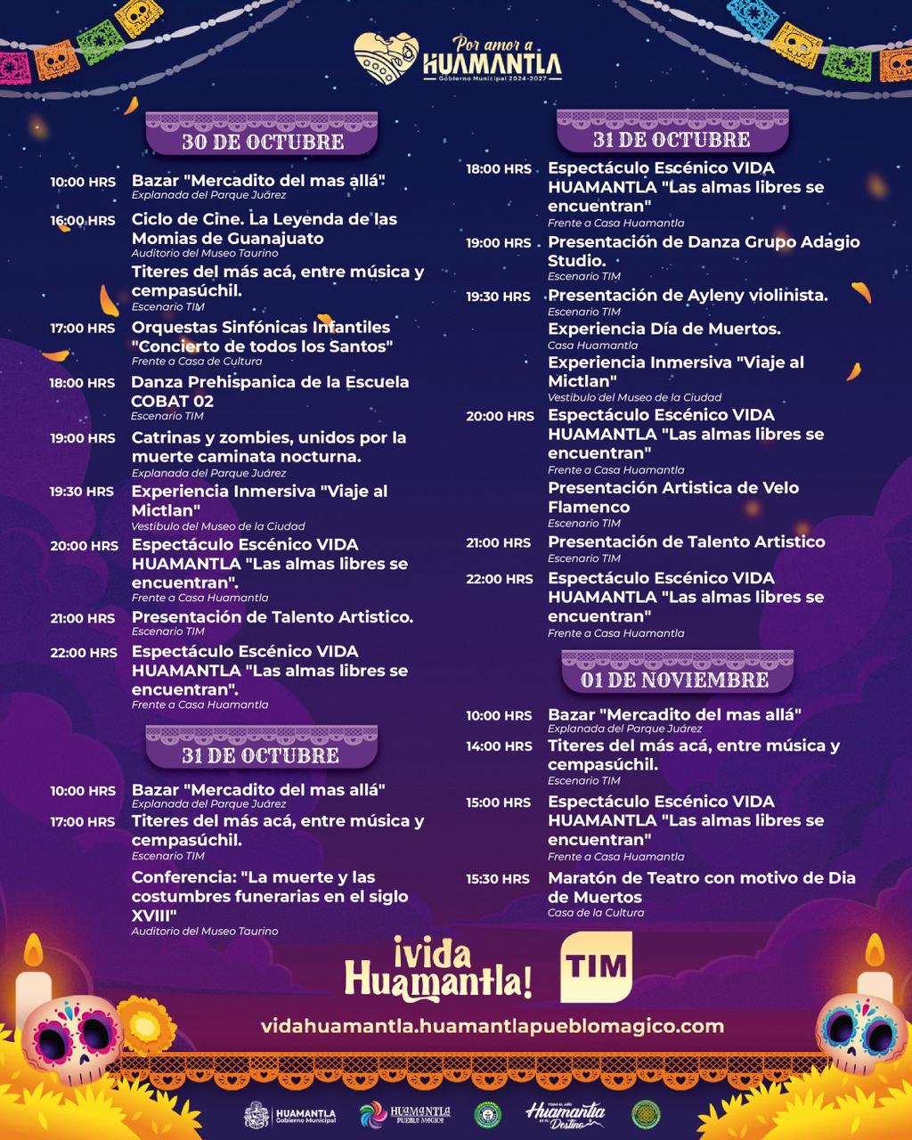 Huamantla, Tlax.– Del 25 de octubre al 2 de noviembre, el municipio de Huamantla vivirá una de sus celebraciones culturales más significativas: “Vida Huamantla”, un festival que reúne música, arte, tradición y sentimiento para honrar a quienes ya no están físicamente, pero que permanecen en la memoria y en el corazón de las familias huamantlecas.