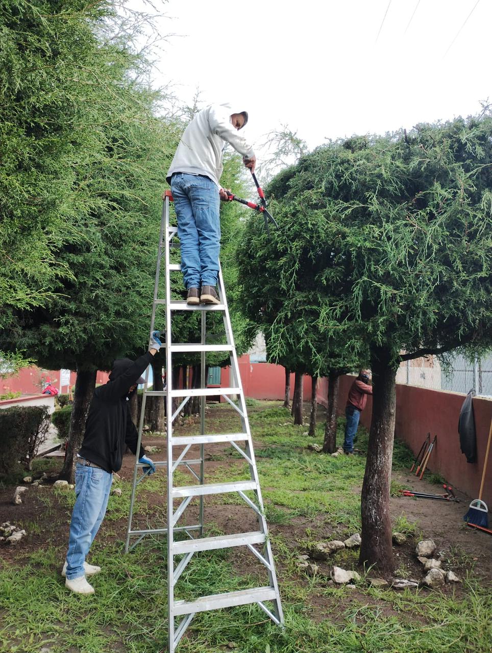 Asimismo, las cuadrillas realizaron la poda de pasto frente al Lienzo Charro y el desyerbe del camellón en esa misma zona; además, se llevaron a cabo acciones de poda de árboles y limpieza en la escuela Lázaro Cárdenas, con el objetivo de mantener espacios seguros y agradables para estudiantes y docentes.