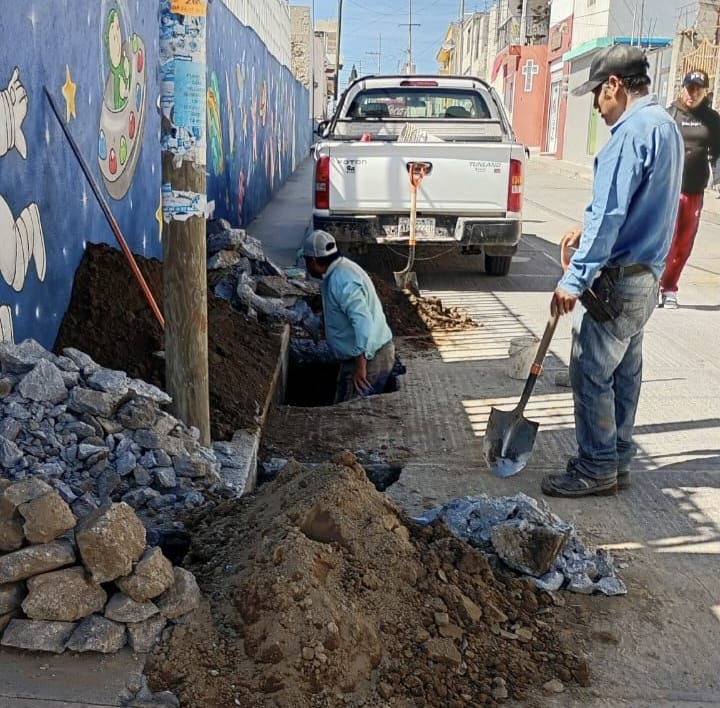 Como parte de estas acciones, se realizaron trabajos de atención a fugas de agua en calle 16 de Septiembre, calle del Pino, calle Allende y calle Sauces, así como labores en la red de drenaje de la calle Narciso Mendoza, contribuyendo a mejorar la eficiencia de la infraestructura hidráulica.