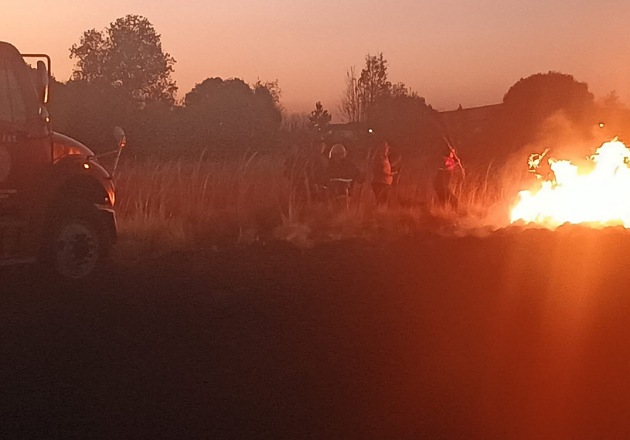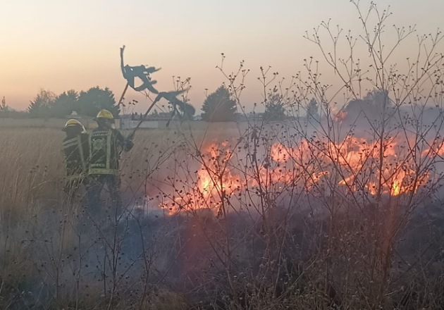Oportuna intervención de Protección Civil y Seguridad Pública de Huamantla evita riesgo mayor por incendio de pastizal