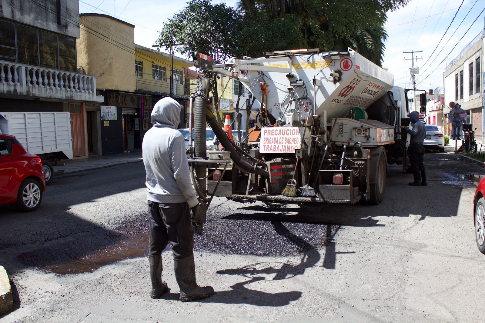 El equipo de bacheo, adscrito a la Dirección de Obras Públicas, trabaja de lunes a viernes, en un horario de 08:00 a 19:00 horas, interviniendo de manera continua las diferentes zonas del municipio y sus siete comunidades.
