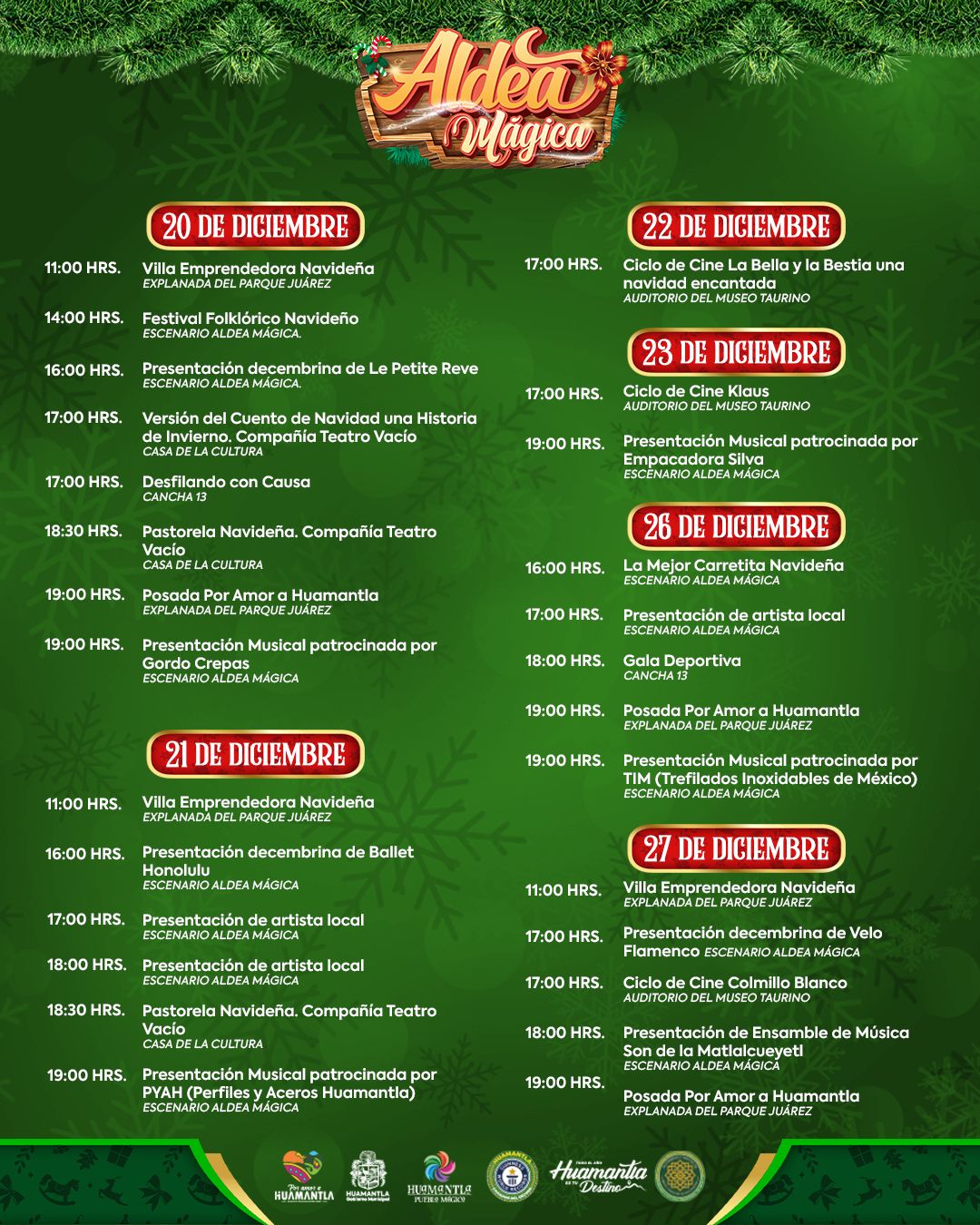 Posteriormente, a las 20:00 horas, se realizará la inauguración formal de Aldea Mágica en el Parque Juárez, donde se presentarán espectáculos artísticos de primer nivel que marcarán el arranque oficial de esta edición.