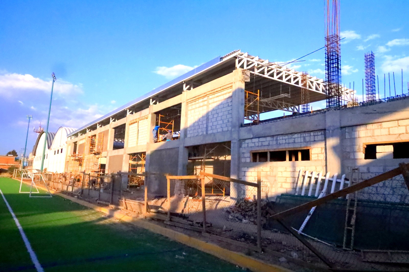La presidenta municipal, Blanca Angulo Meneses, informó que la construcción del Complejo Deportivo de Chiautempan registra avances significativos, como parte del programa “Peso a Peso”, en coordinación con el Gobierno del Estado que encabeza la mandataria Lorena Cuéllar Cisneros.