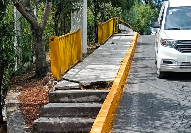 banquetas de la avenida Juárez, en la comunidad de San Esteban Tizatlán, lo