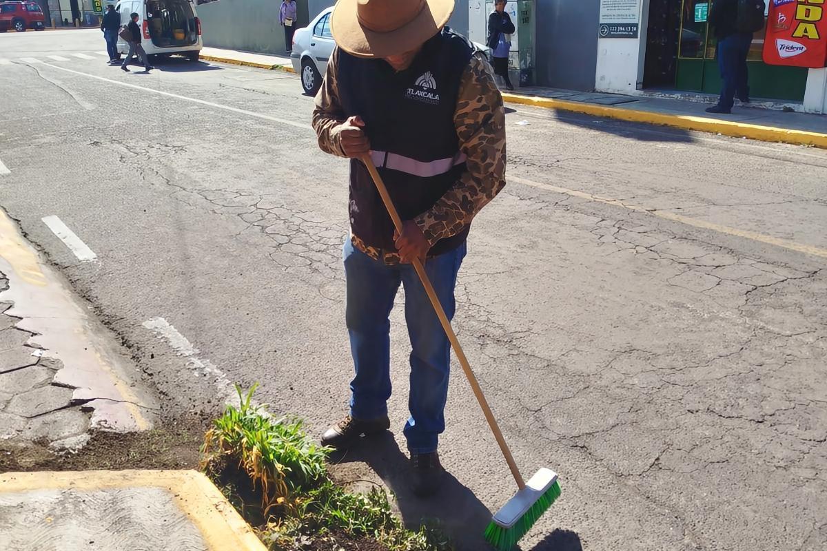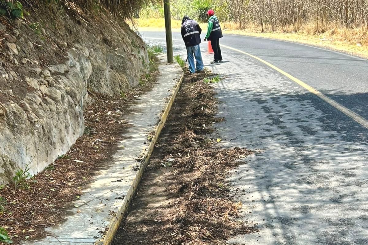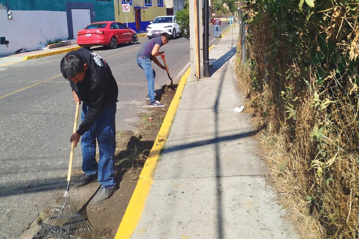 En la zona de Tepehitec, continuaron los trabajos con una brigada dedicada a la limpieza de guarniciones sobre la avenida principal, donde se realiza una segunda intervención debido al rápido crecimiento del pasto y hierba.