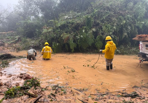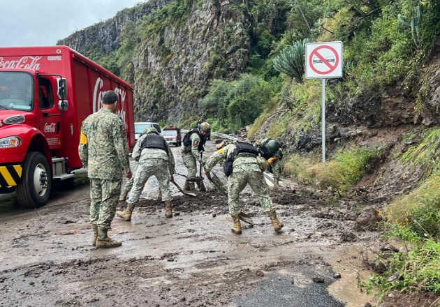 equipos; la carretera Pachuca-Tuxpan en el km 127+140 resultó con afectaciones,