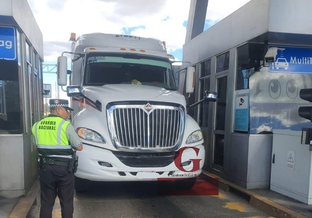 Al trasladarse al lugar, los agentes visualizaron un tractocamión marca International, color blanco, acoplado a una plataforma roja, que se encontraba obstruyendo la circulación en la plaza de cobro con dirección a Amozoc.