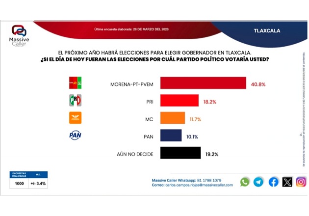 encuesta realizada por Massive Caller, fechada el 28 de marzo, ubica a Morena y