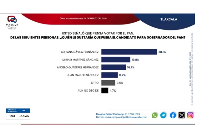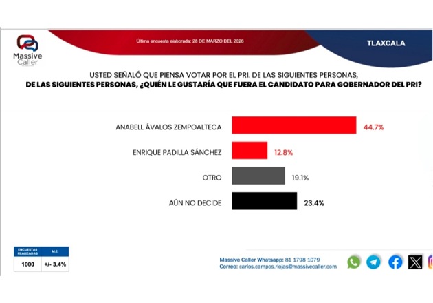 por ciento de las intenciones de voto, seguida del alcalde de Tlaxcala Alfonso