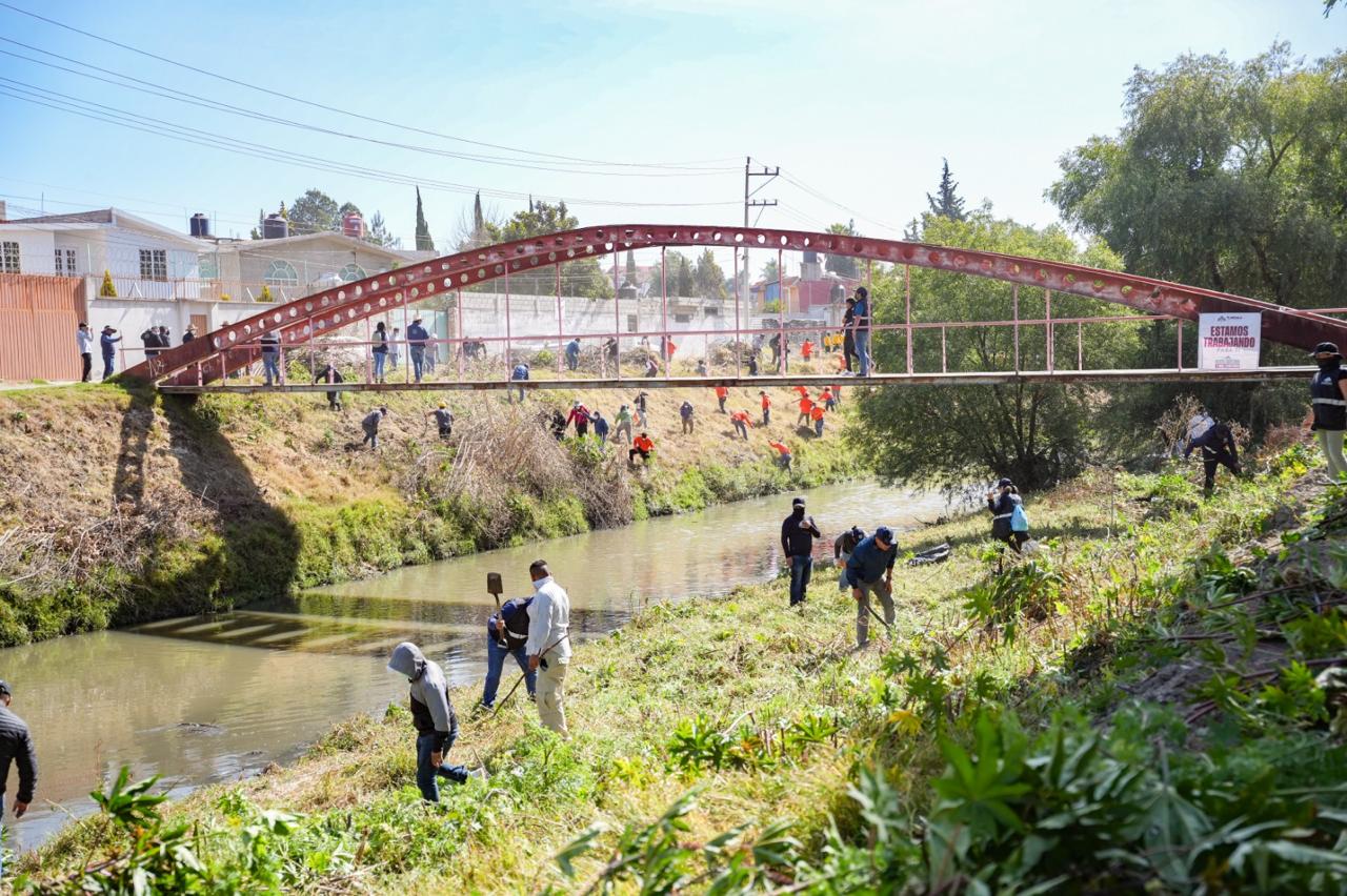 Tras el acto protocolario, las brigadas del ayuntamiento se desplegaron a lo largo de 2 kilómetros de la ribera del Zahuapan con acciones como limpieza general, desrame, poda, retiro de residuos sólidos y sedimentos con maquinaria pesada y pintura de guarniciones, principalmente.