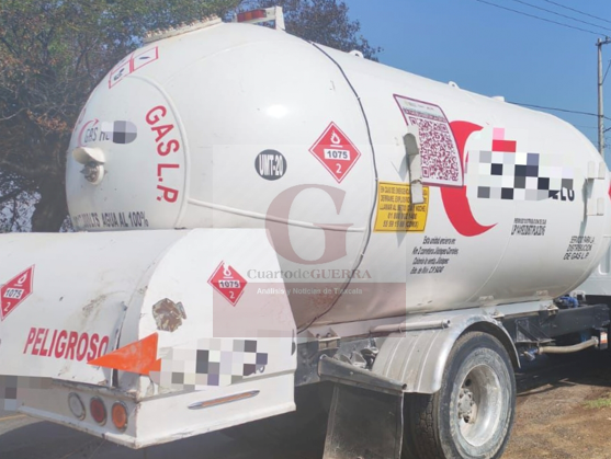 Abandonan pipa de gas LP tras quedarse atascada en Nativitas; se presume intento de 'ordeña'