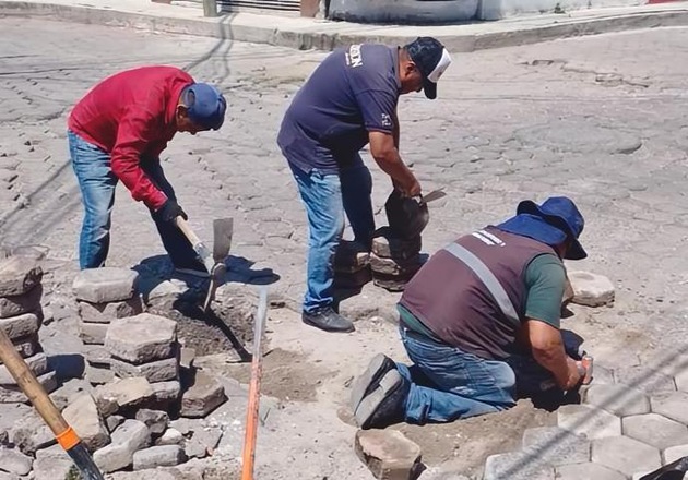renivelación de adoquín en la calle Reforma del barrio de Tlacomulco; en la