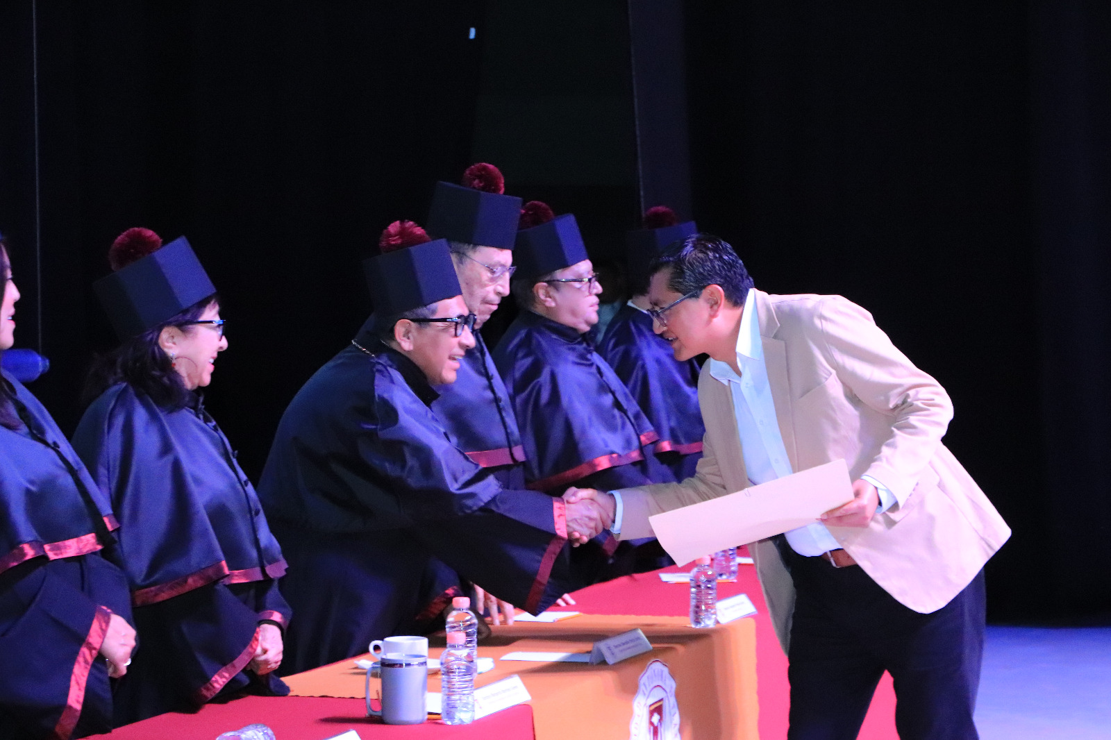 Ante los nuevos titulados y sus familias e integrantes de la estructura universitaria, reunidos en el Centro Cultural Universitario, el Doctor Ortiz Ortiz rememoró que desde hace 25 años se caracteriza con diez particularidades al homo universitatis a quienes se forman en una trayectoria universitaria, de las cuales cinco se refieren a los conocimientos que los llevó a convertirse en analítico, comprensivo, predictivo, innovador, propositivo; y las otras cinco se refieren al comportamiento cívico con principios y valores para ser coexistente, democrático, solidario, inclusivo y universal, aspectos que conducen a transformar la personalidad del estudiante para fomentar el autocontrol, la responsabilidad y la dignidad humana.