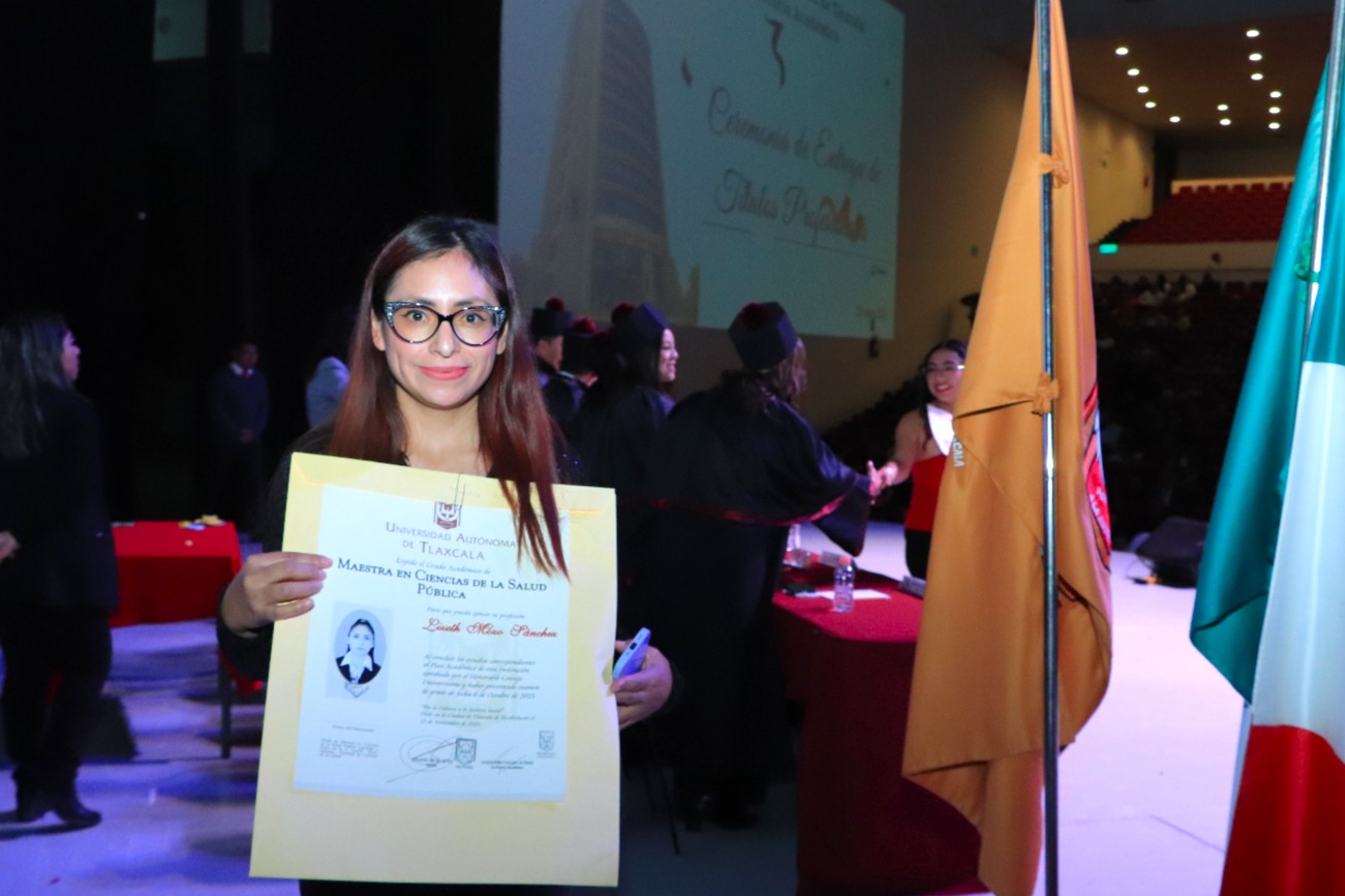 A su vez, Viridiana Xochitiotzin Xochitiotzin, egresada de la Licenciatura en Médico Cirujano, en representación de los estudiantes titulados, manifestó que hoy asumen la meta alcanzada con el compromiso de seguir aprendiendo y con un elevado sentido humano, porque el verdadero título está en cada vida que puedan tocar, ayudar y orientar para brindarles mejores condiciones de vida y bienestar.