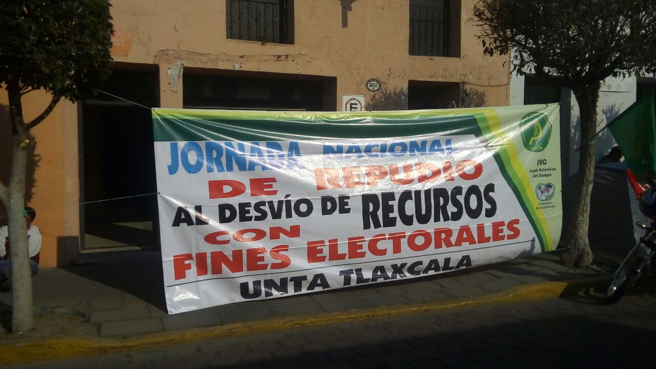 En una jornada que denominaron para exigir que no se usen recursos con fines electorales, diversas organizaciones campesinas se manifestaron este miércoles en la ciudad de Tlaxcala.