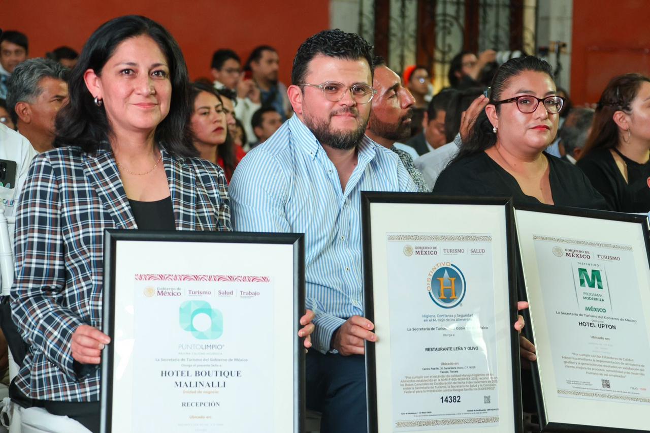 También se entregaron distintivos H a Marco Antonio Maldonado Mellado, chef de Leña y Olivo de Tlaxcala, y distintivo M a Viviana Fernández, representante legal del Hotel Upton Apizaco.