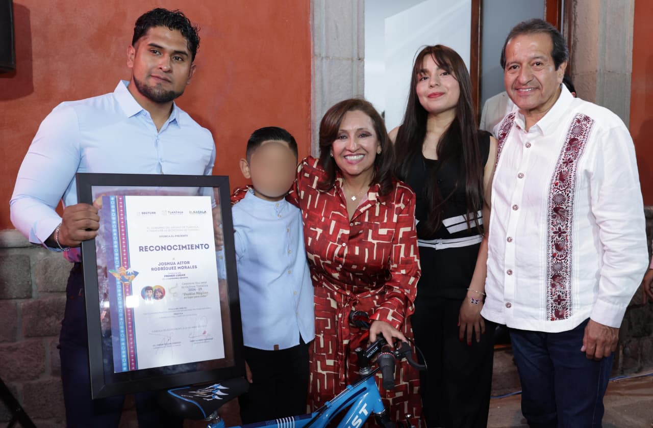 Posteriormente, se otorgaron reconocimientos y obsequios a los ganadores del Concurso Nacional de Cultura Turística 2024-2025 “Pueblos Mágicos, un lugar para soñar”, destacando el primer lugar estatal y federal en la categoría infantil en dibujo, Joshua Aitor Rodríguez Morales, de 7 años, de Santa Catarina Ayometla, quien recibió su reconocimiento y una bicicleta; así como el primer lugar estatal en la categoría libre de fotografía, “Blanco, el cielo y la tierra”, para Arturo Sánchez Rodríguez, de San Damián Texoloc, quien recibió su reconocimiento y una tablet.