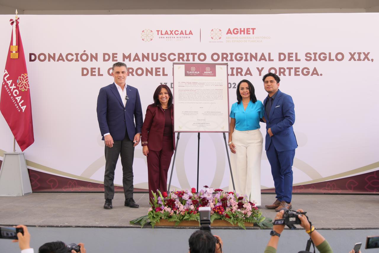 El Gobierno del Estado de Tlaxcala recibió en donación el manuscrito original del siglo XIX del coronel Miguel Lira y Ortega, documento de alto valor histórico que pasa a resguardo del Archivo General e Histórico del Estado. El acto fue encabezado por la gobernadora Lorena Cuéllar Cisneros, quien reconoció el gesto del donante como una contribución invaluable a la memoria colectiva de la entidad.