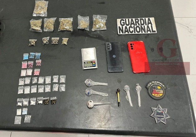 Tras la inspección, se confirmó que el detenido portaba diversas sustancias ilícitas empaquetadas para su distribución. El resultado del aseguramiento incluyó 23 dosis de la droga conocida como "cristal", ocho dosis de cocaína y diez bolsas de marihuana.