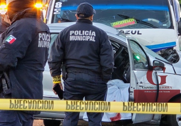(Alexis P. González) Un brutal percance vial cobró la vida del conductor de un automóvil particular este domingo por la mañana en la capital tlaxcalteca. El siniestro tuvo lugar sobre la Avenida Independencia, justo a un costado del Asta Bandera, donde una camioneta de transporte público de la línea Flecha Azul impactó violentamente al auto.