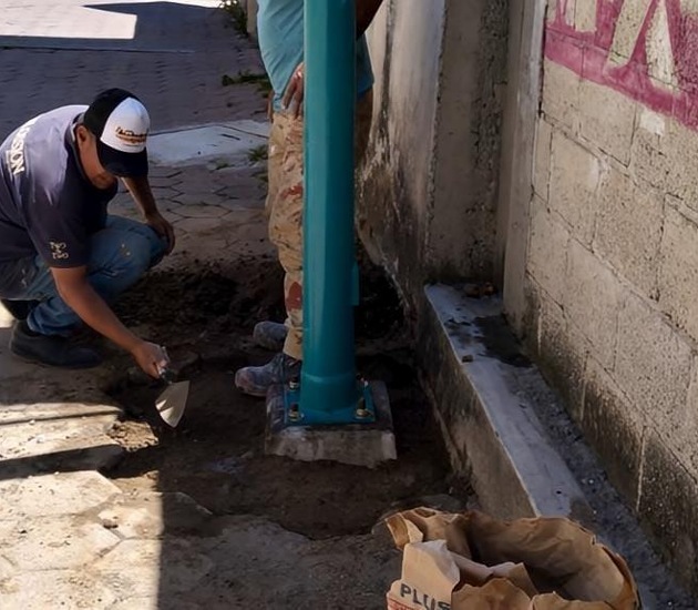 la colocación de un nuevo poste en la privada Vista Hermosa, en la colonia