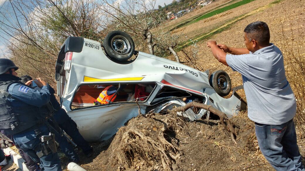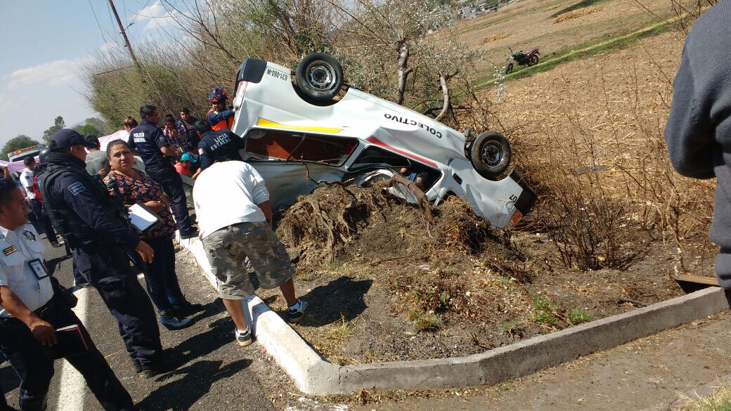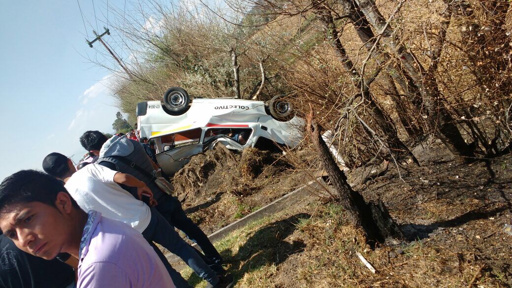 Colectiva vuelca con pasajeros sobre la San Martín-Tlaxcala